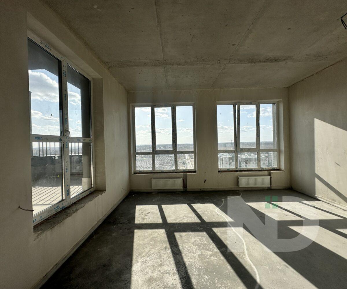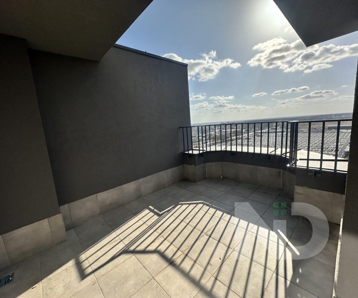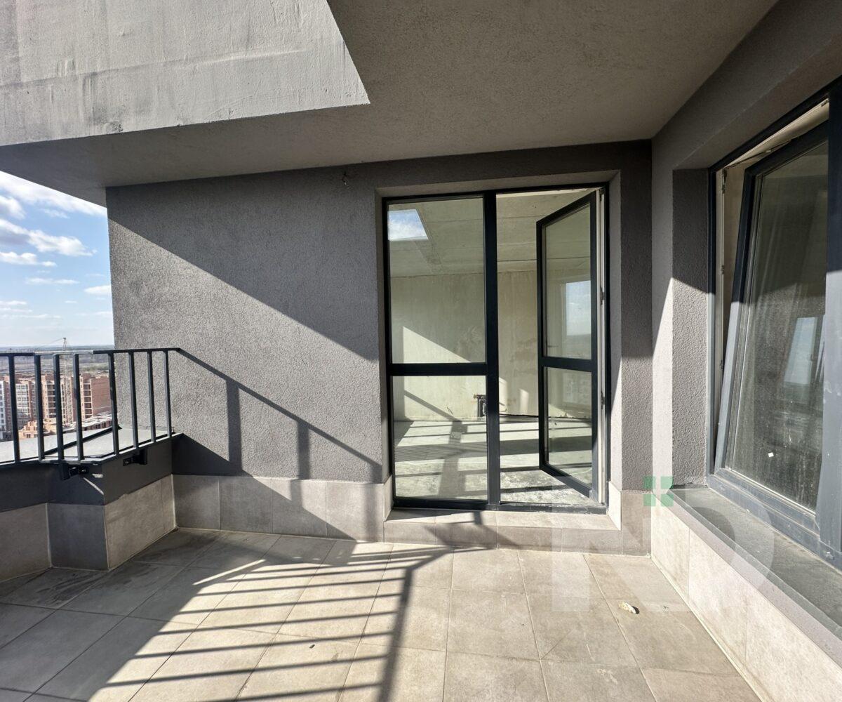 Помешкання має великі панорамні вікна, з яких відкривається неймовірний краєвид на місто. Простора кухня-вітальня з виходом на велику терасу створює затишну атмосферу та дає можливість насолоджуватися ранковою кофе просто неба.