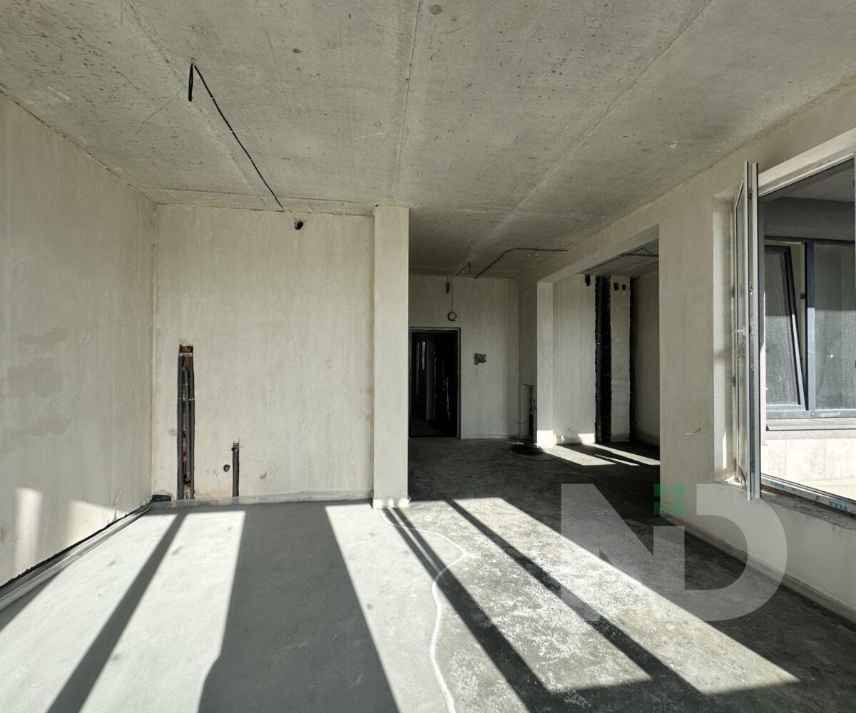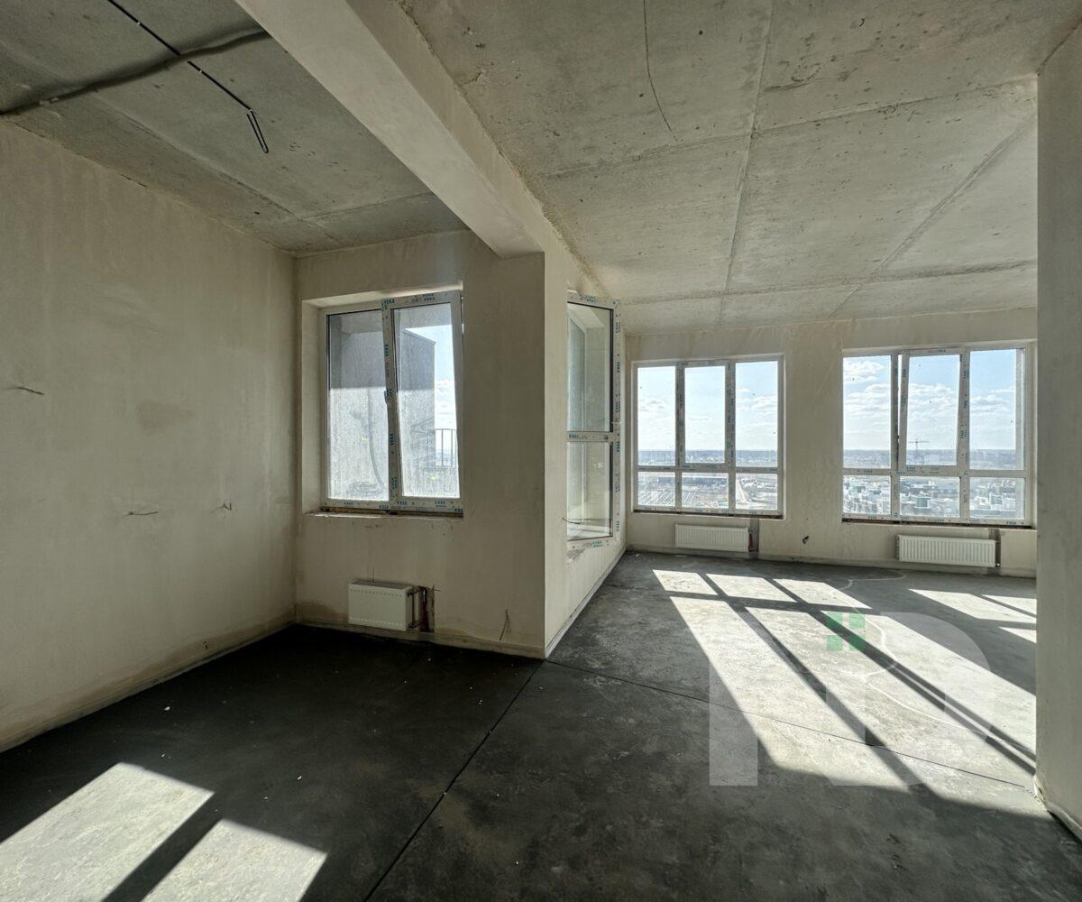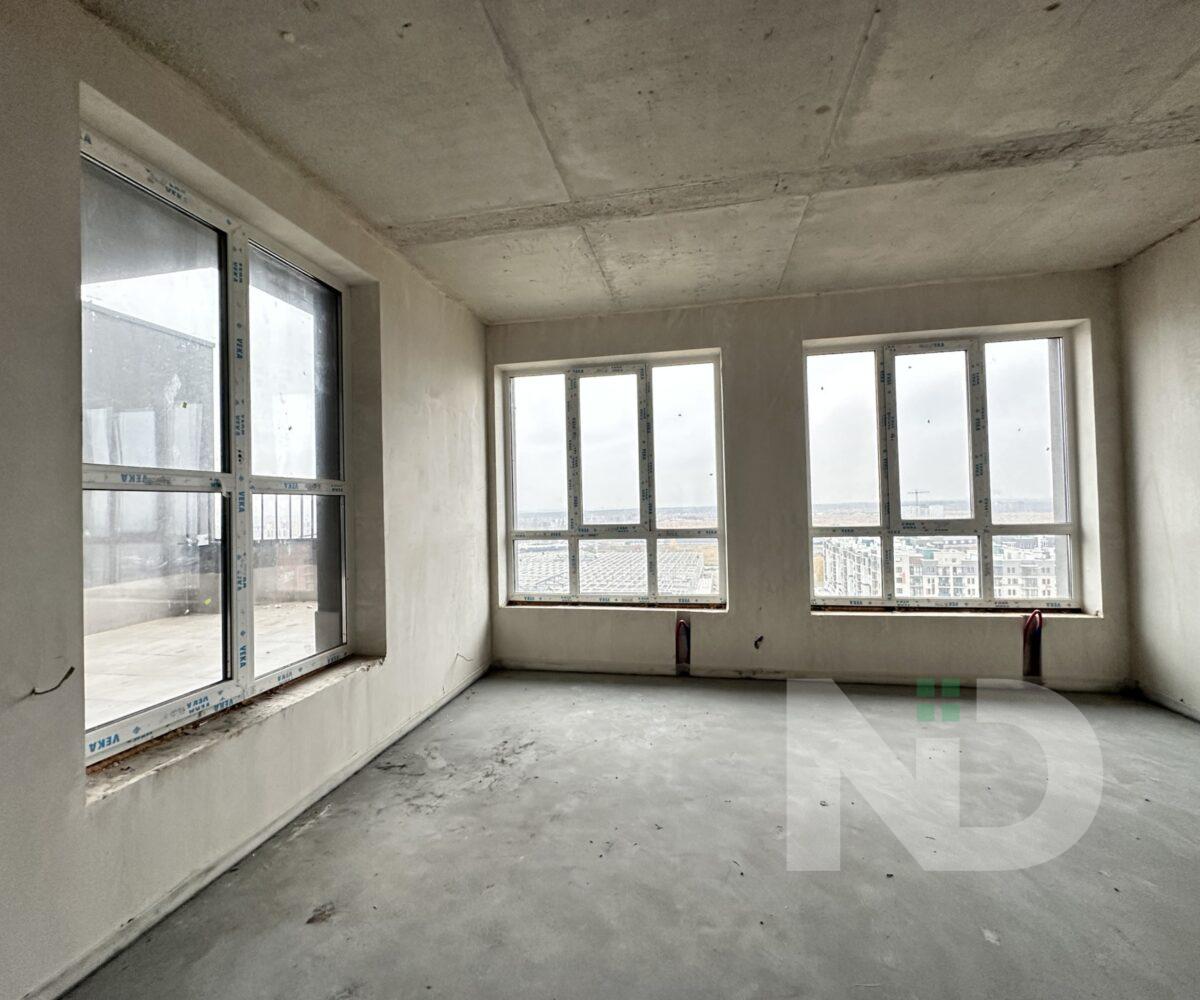 Помешкання має великі панорамні вікна, з яких відкривається неймовірний краєвид на місто. Простора кухня-вітальня з виходом на велику терасу створює затишну атмосферу та дає можливість насолоджуватися ранковою кофе просто неба.