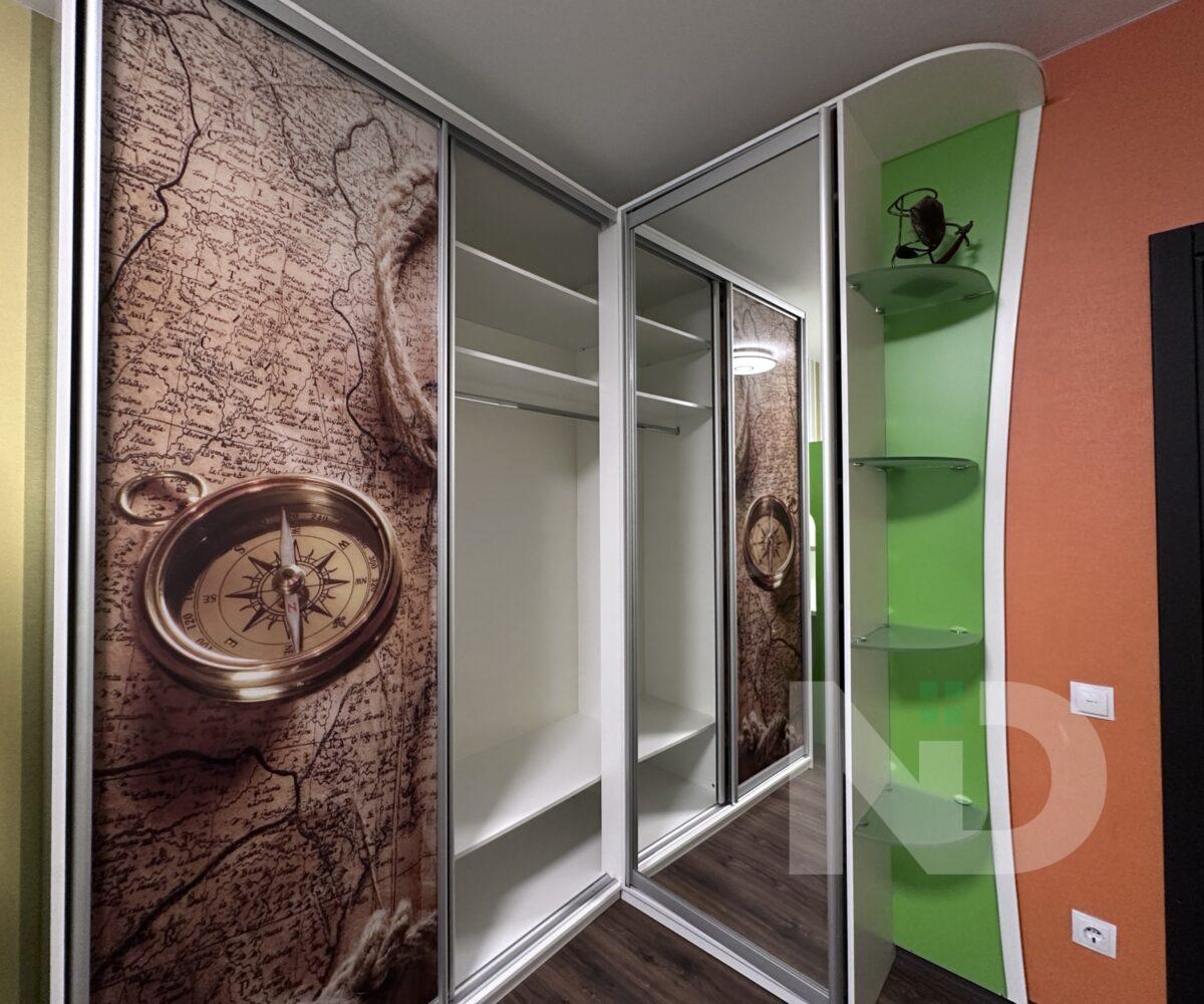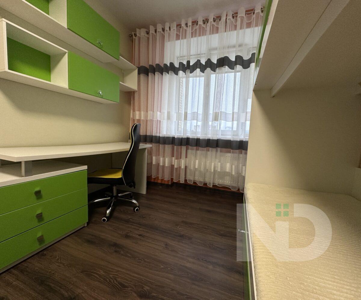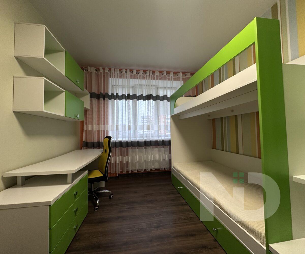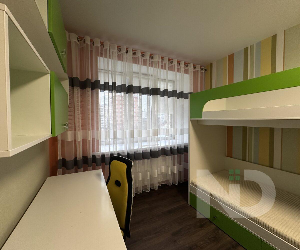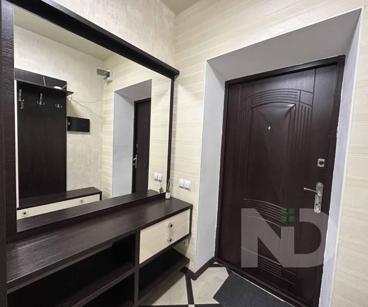 В квартире две отдельные комнаты: одна – полноценная спальня, которую можно использовать как детскую, рабочий кабинет или гостевую; вторая — комната площадью 8 м² без окна, оформленная в спокойных теплых тонах. Благодаря правильной планировке пространство в квартире чувствуется максимально функциональным.