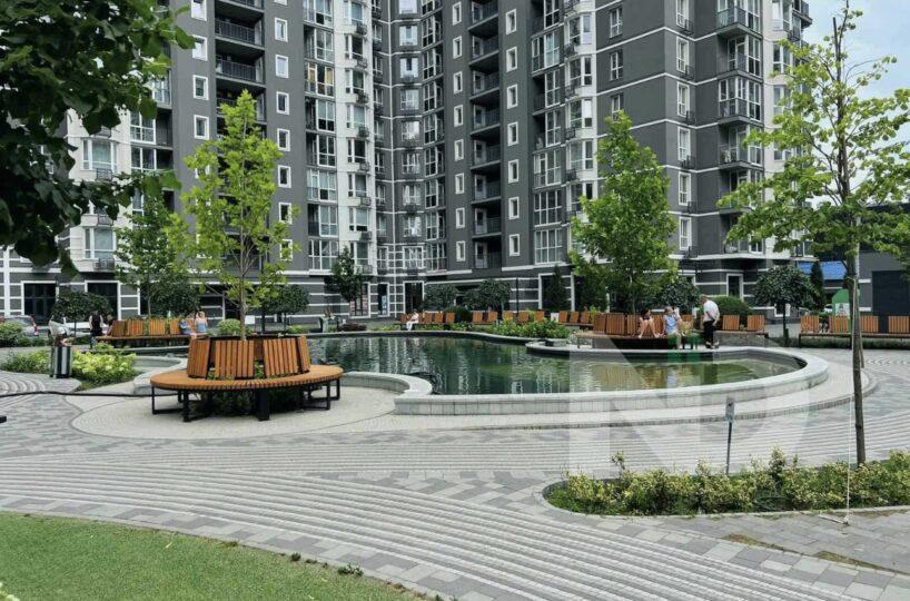 Жилой комплекс «Гранд Бурже» – это современный масштабный проект с развитой инфраструктурой: подземный паркинг, торговый центр, зоны отдыха, детские площадки, удобная транспортная развязка и близость к Киеву.