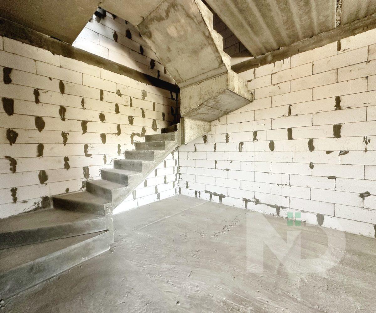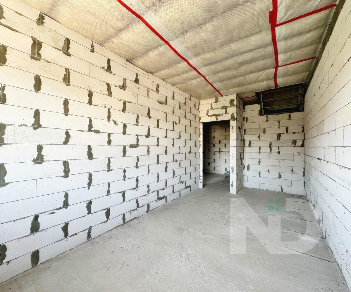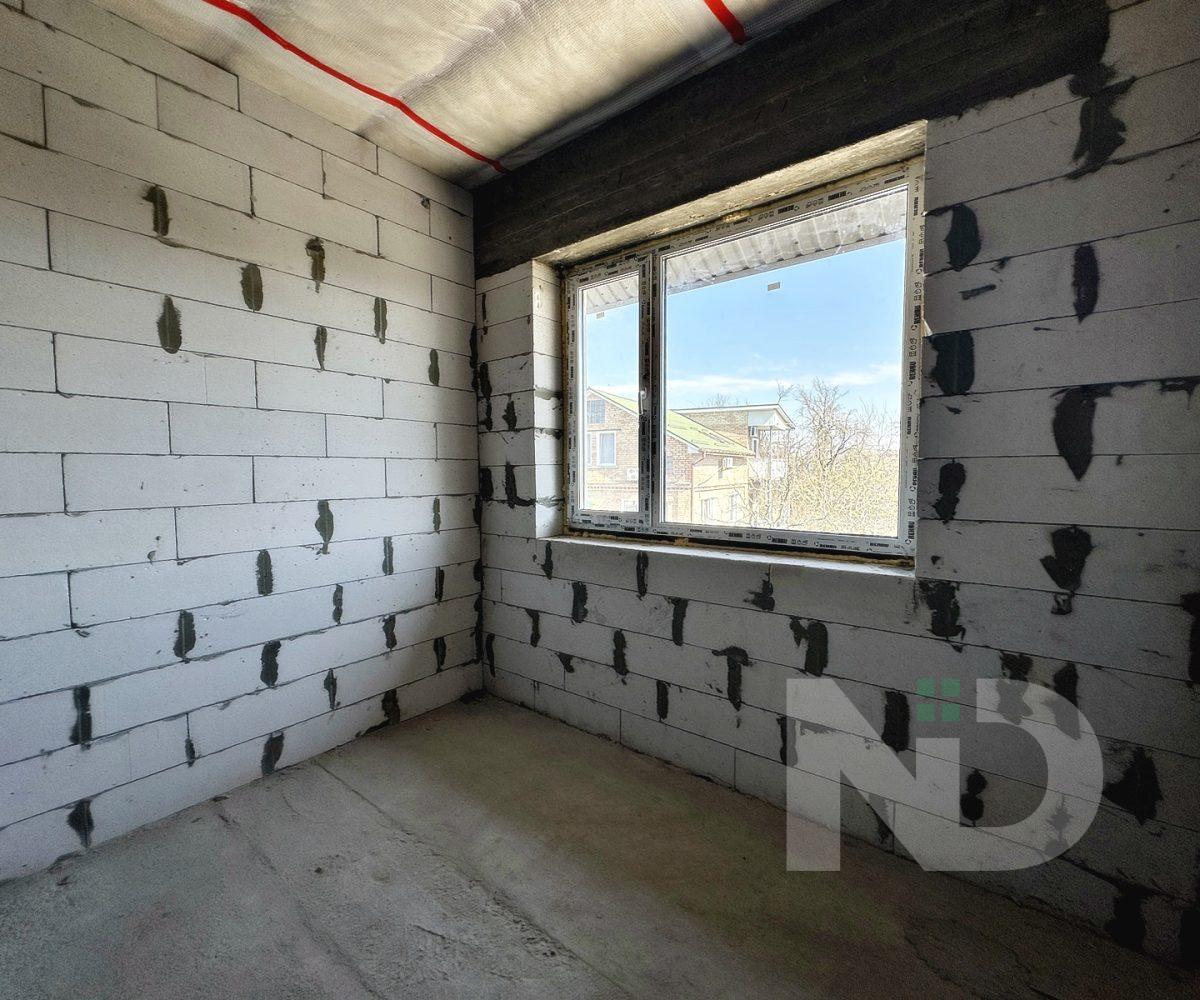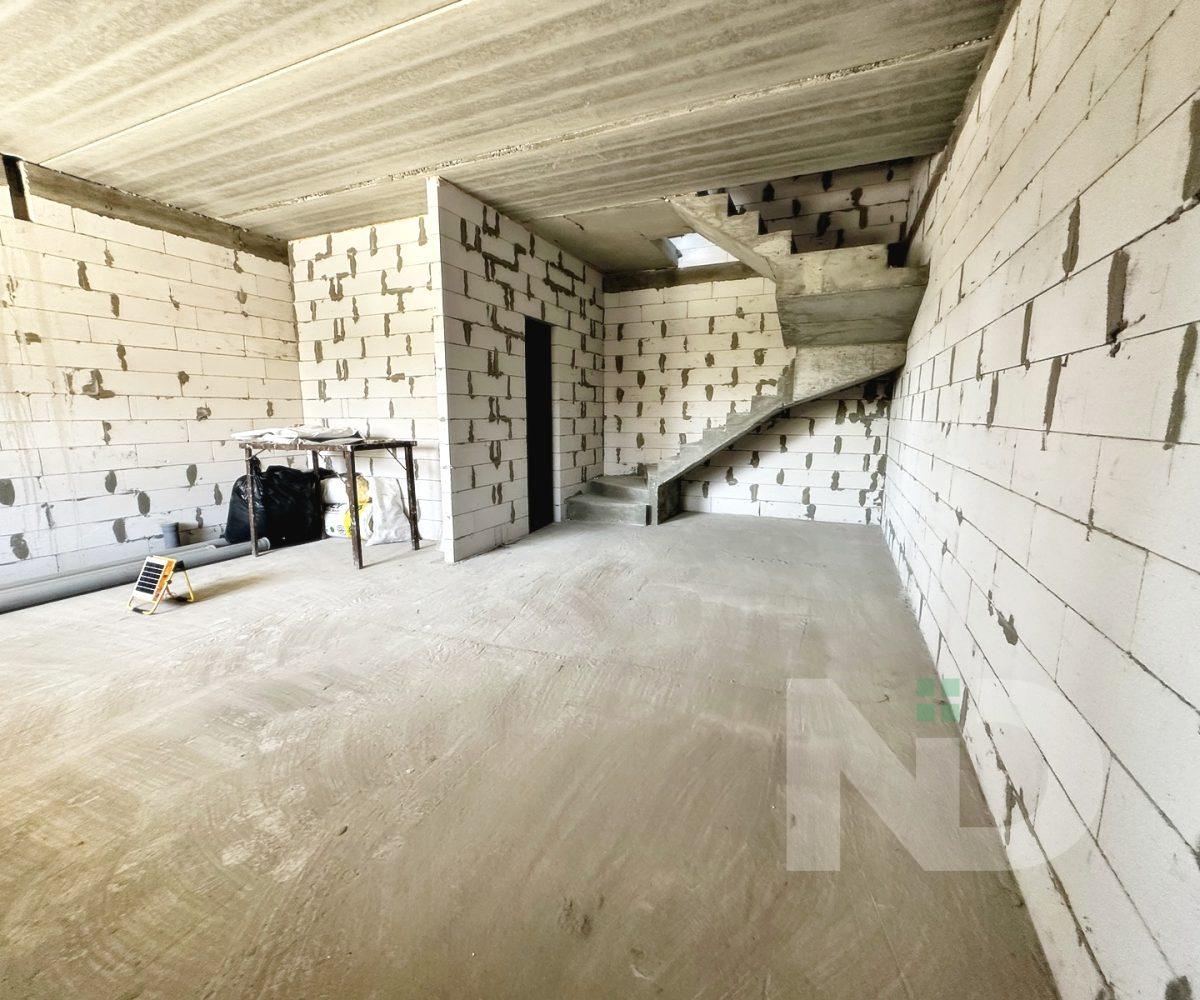 Общая площадь 90,6 м². Отличная планировка: на первом этаже прихожая с местом для гардеробной, гостевой санузел и большая кухня-гостиная площадью 36,4 м². На второй этаж ведёт бетонная лестница, там же расположены 2 спальни и санузел. На третьем этаже есть возможность обустроить полноценную комнату площадью 20 м², высота потолков в коньке 2,6 метра, здесь уже установлено мансардное окно и железный каркас под лестницу. Потолок между вторым и третьим этажами деревянный, утеплённый минеральной ватой 200 мм и обшитый деревянными досками. Дом построен из газоблока, утеплён пенопластом толщиной 100 мм. Фасад комбинированный – плитка и штукатурка. Окна энергосберегающие, Rehau.