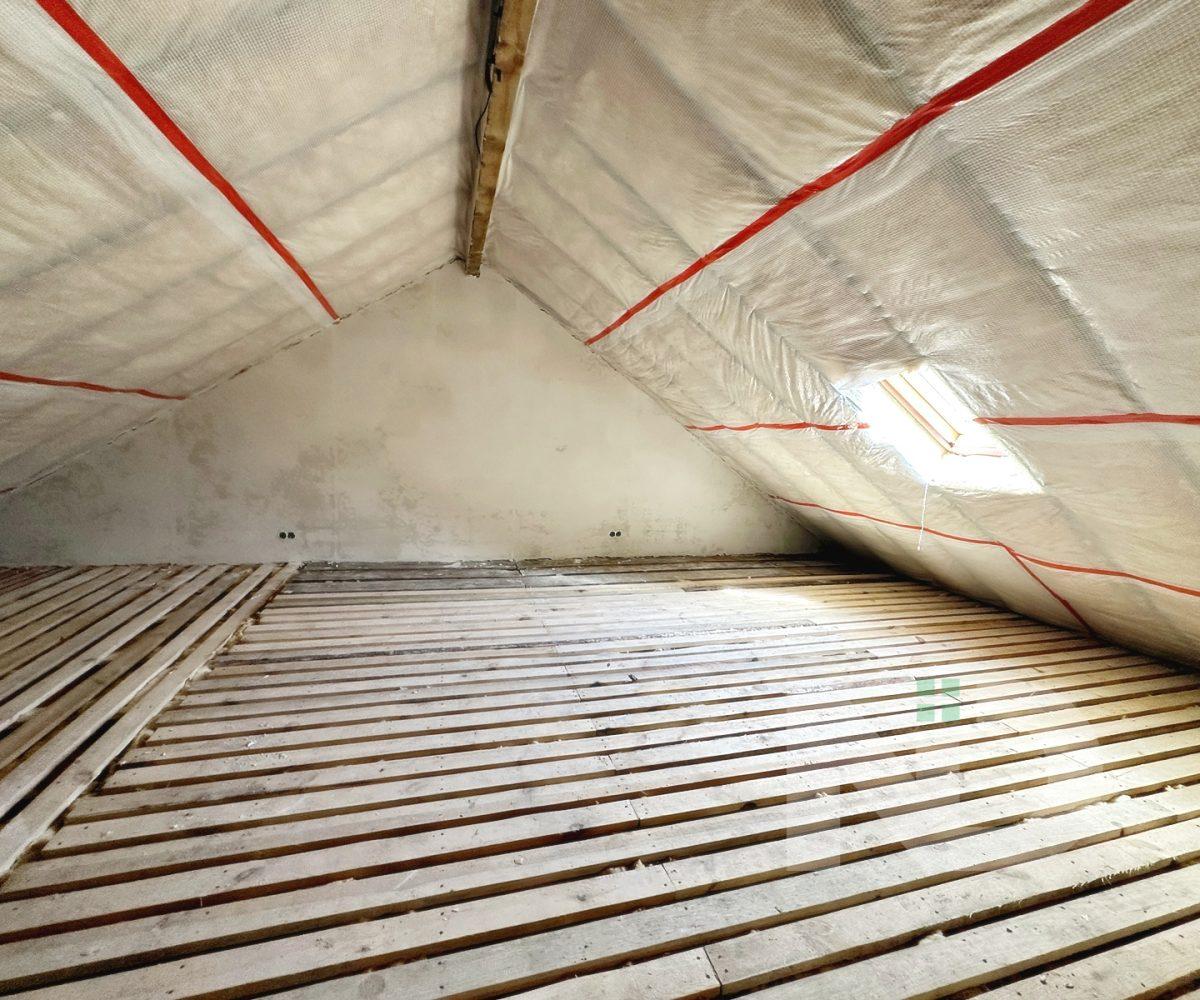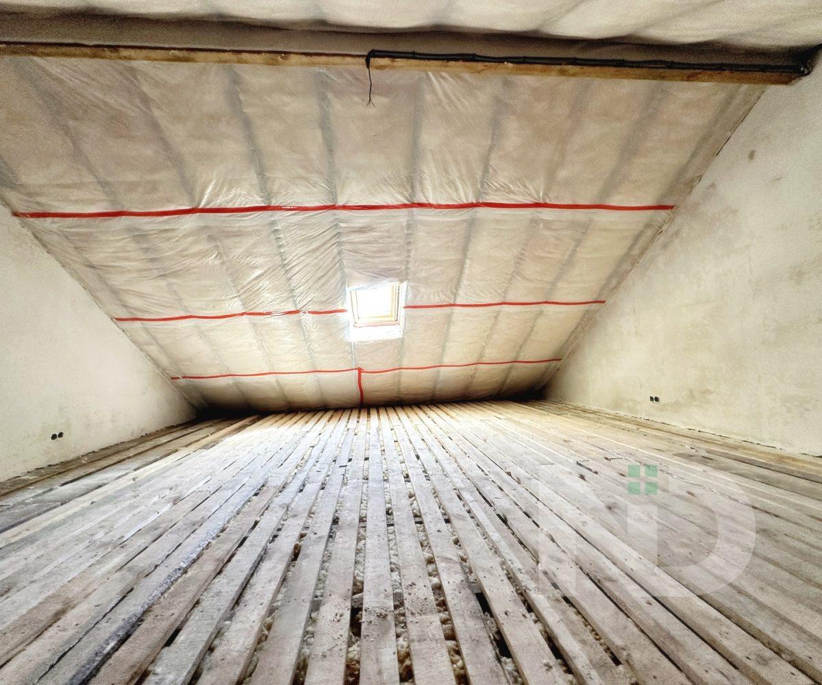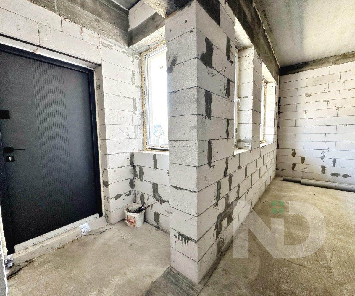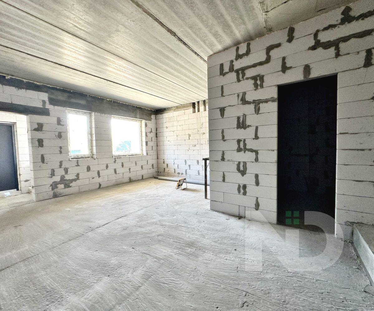 Общая площадь 90,6 м². Отличная планировка: на первом этаже прихожая с местом для гардеробной, гостевой санузел и большая кухня-гостиная площадью 36,4 м². На второй этаж ведёт бетонная лестница, там же расположены 2 спальни и санузел. На третьем этаже есть возможность обустроить полноценную комнату площадью 20 м², высота потолков в коньке 2,6 метра, здесь уже установлено мансардное окно и железный каркас под лестницу. Потолок между вторым и третьим этажами деревянный, утеплённый минеральной ватой 200 мм и обшитый деревянными досками. Дом построен из газоблока, утеплён пенопластом толщиной 100 мм. Фасад комбинированный – плитка и штукатурка. Окна энергосберегающие, Rehau.
