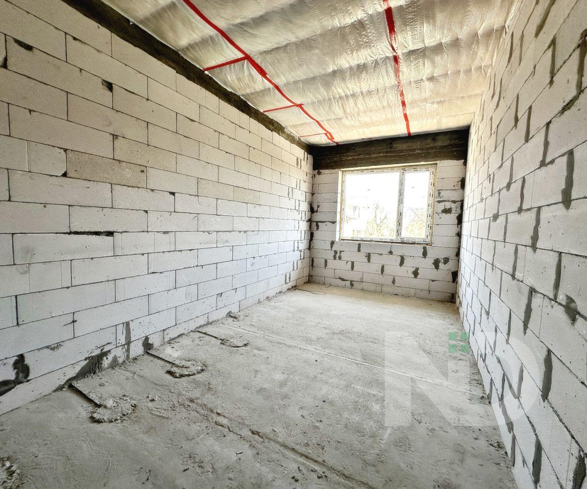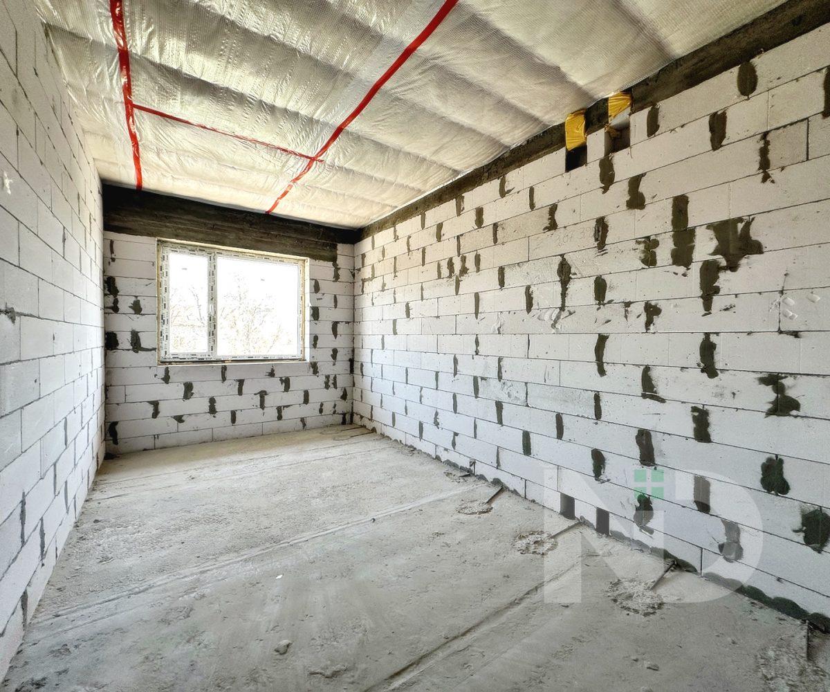 Общая площадь дома – 90.6 м2. Очень удачная планировка: на первом этаже прихожая с местом под шкаф, гостевой санузел и большая кухня-гостиная 36.4 м2. На второй этаж ведет бетонная лестница, здесь располагаются 2 спальни и ванная комната. Есть возможность обустроить полноценную комнату на 3-м этаже в 20 м2, высота в коньке 2.6 метра, здесь уже установлено мансардное окно и железный каркас под лестницу. Перекрытие между вторым и третьим этажом деревянное, утепленное минватой 200 мм, и подбитое деревянной доской.
