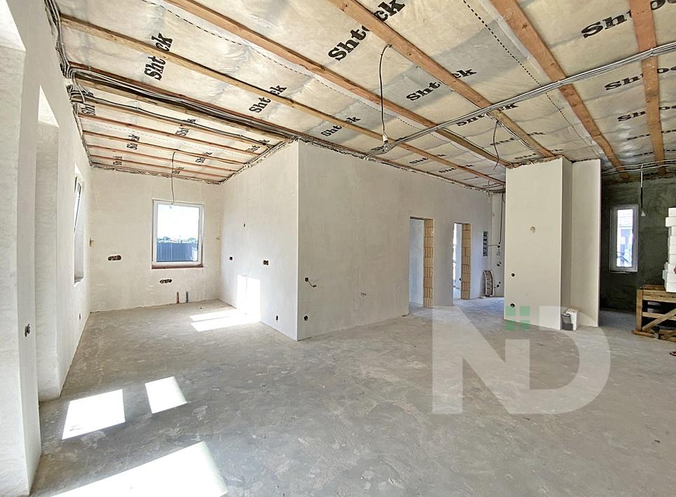 Продается дом с чистовой отделкой стен + мультифиниш, лазерной стяжкой пола, пол дополнительно утеплён пенопластом (100мм), также смонтирована система теплого пола в санузлах, кухне-гостинной. Выполнена разводка електрики по дому и участку в 120 точек. Разводка сантехники и отполения по точкам. Отопление в доме индивидуальное электрическое, установлен електрокотел Вosh. Дом подключен к пульту охраны- разводка датчиков движения по дому.