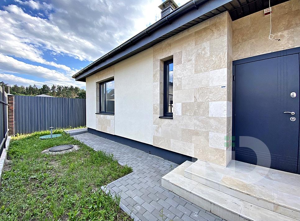 Уютный одноэтажный дом в новом районе Лесной Буче. Возведен из энергоэффективного керамоблока (10.5 NF), внутренние перегородки из керамоблока (2 NF), утеплен пенопластом 150 мм, фасад – декоративная штукатурка с елементами искуственного камня «травертин».