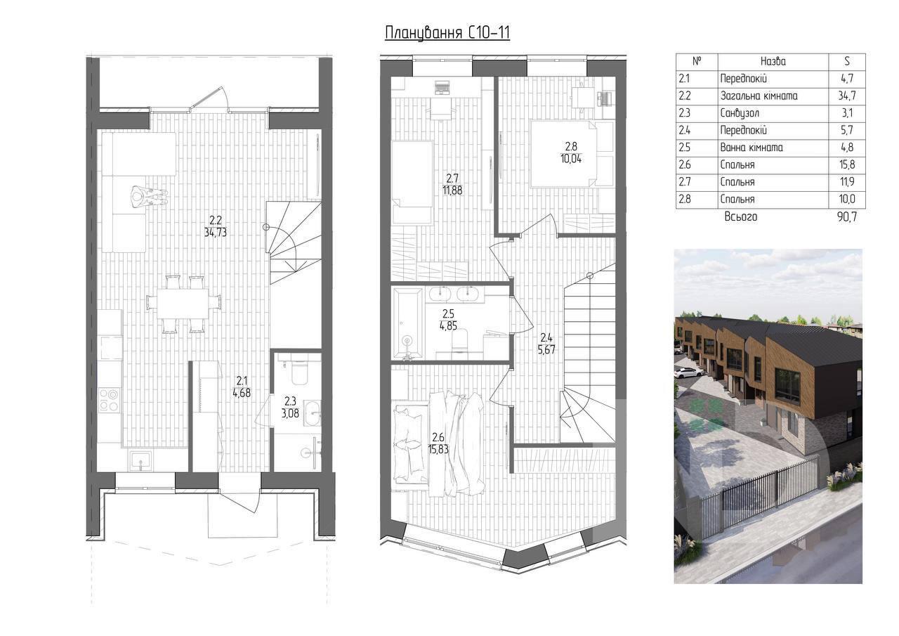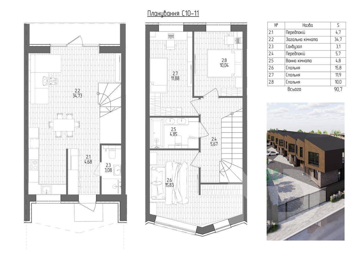 Общая площадь: 90,7 м2