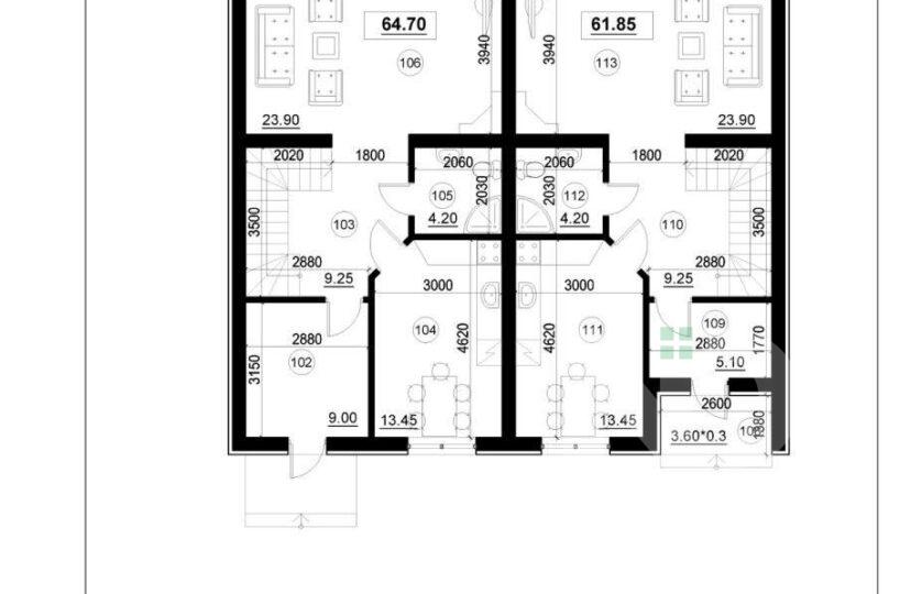 Просторная планировка включает отдельную кухню, большую гостиную с выходом на задний двор,0 три спальни на втором этаже. Территория вокруг дома также будет оборудована дорожками из плитки ФЭМ, а участок будет огражден деревянным забором. Дуплекс находится в тихой и уютной части населённого пункта. Вся необходимая инфраструктура находится поблизости.