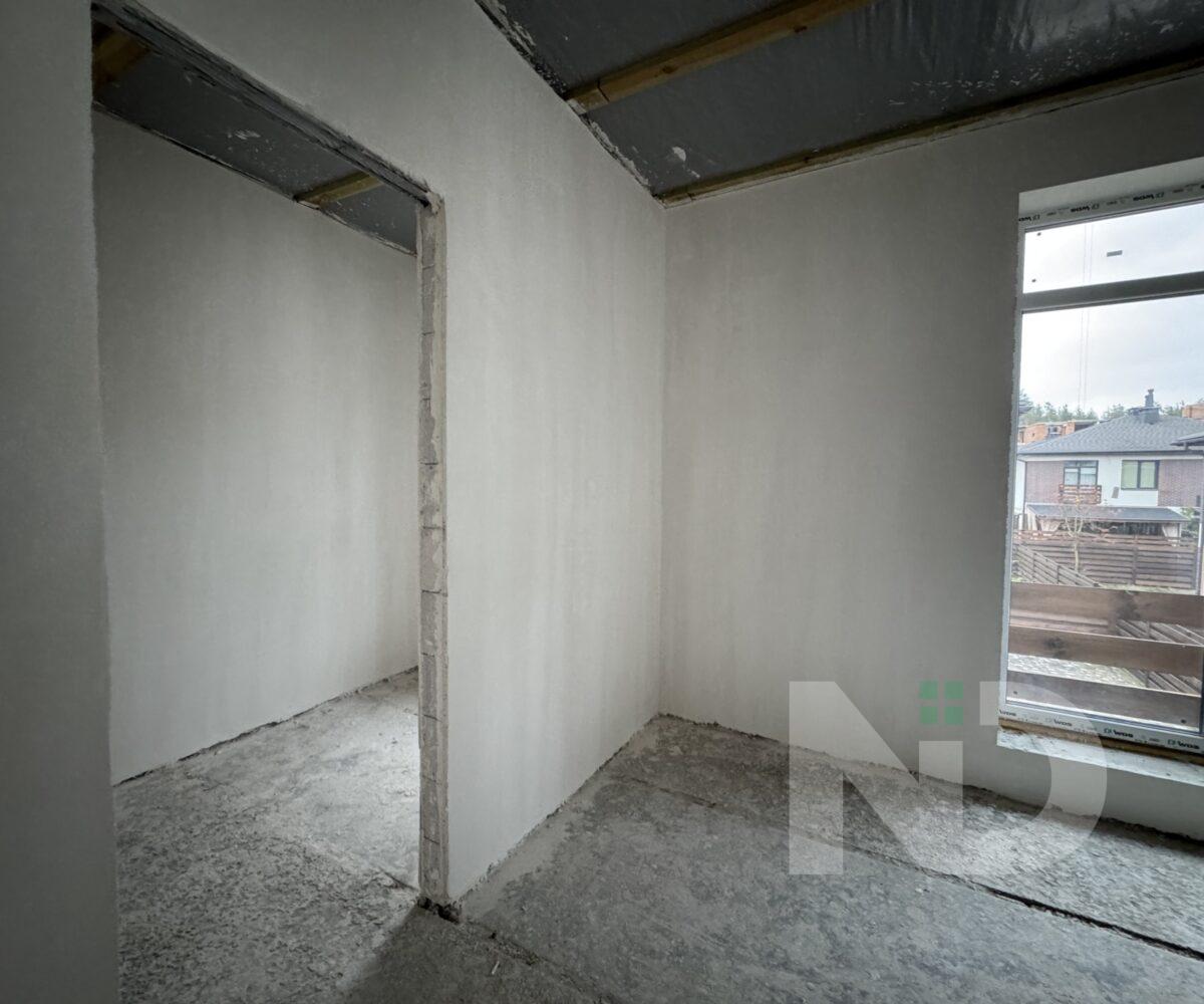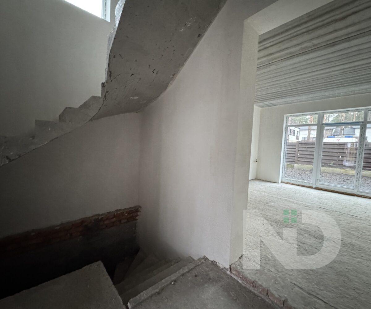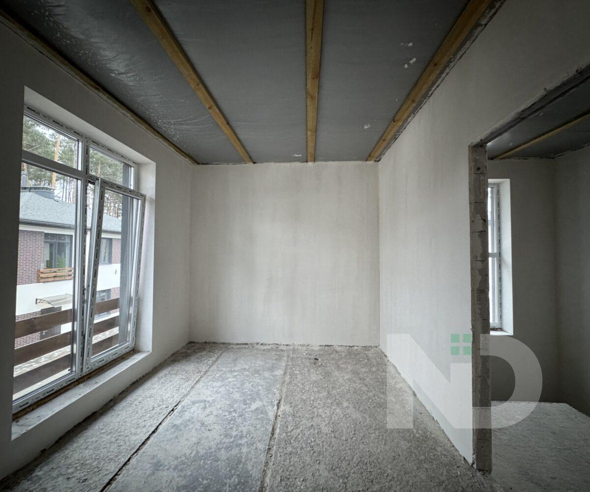 Продажа дуплекса с большим придомовым участком и эксклюзивной планировкой по индивидуальному проэкту в КМ Лесное в пгт. Гостомель. Дуплекс готов к проведению ремонтных отделочных работ. По стенам выполнена чистовая штукатурка, на полу стяжка. Дом имеет 4 большие комнаты, 2 санузла и просторную кухню-гостиную площадью 30 м2. Установлена дорогостоящая качественная расдвижная система панорамных окон для выхода из кухни на собственную террасу.