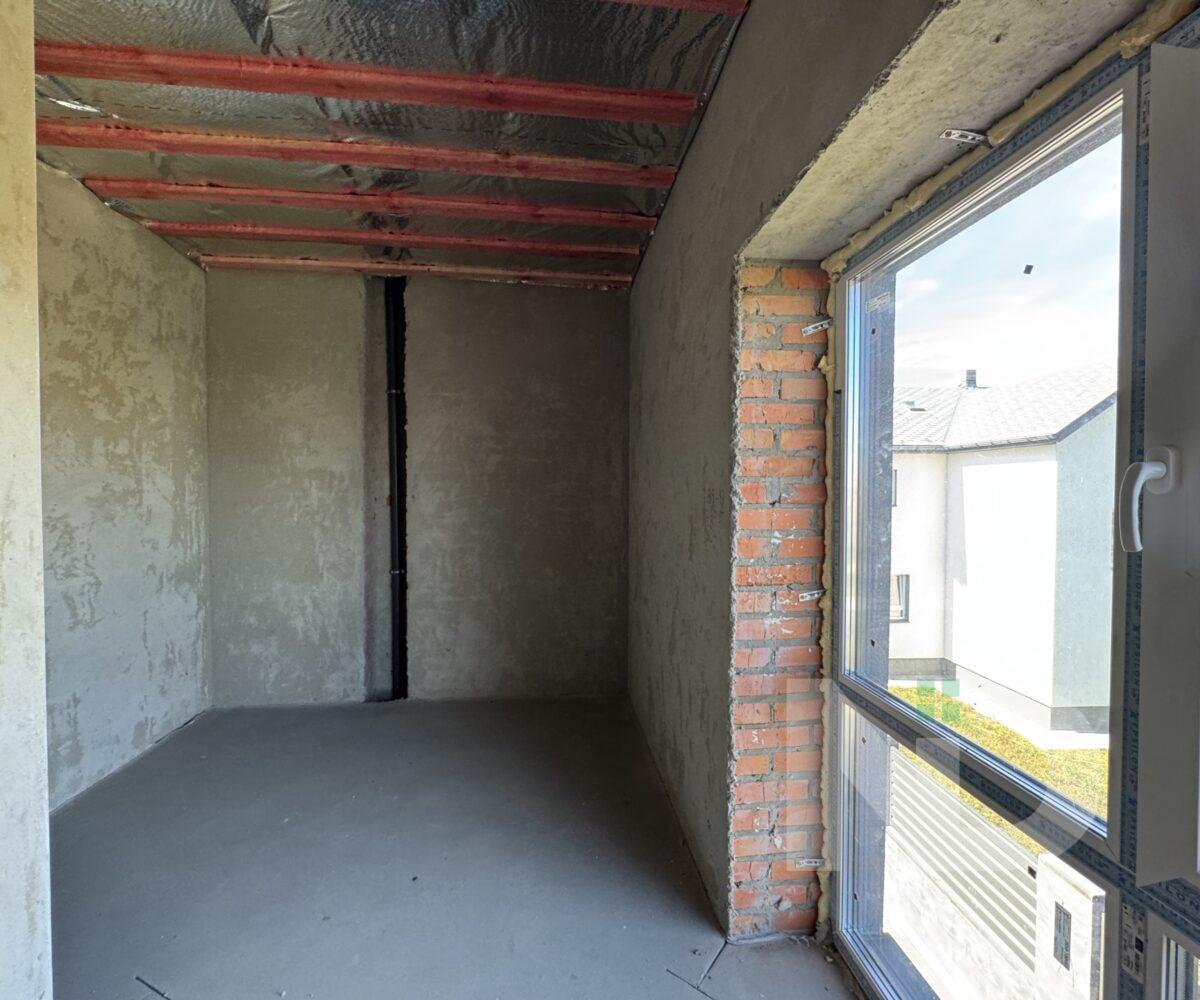 В доме уже выполнена цементно-песчаная штукатурка стен, чистовая стяжка пола, металлический каркас на лестницу, сделан теплый пол и разводка сантехники. Установлены 2-х камерные окна и двери. В дом заведены все коммуникации: центральные водоснабжение и водоотвод, 7 кВт электричество.