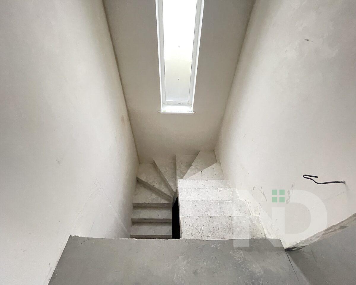 Дом возведен из газоблока, утеплен, с железобетонными перекрытиями и бетонной литой лестницей.