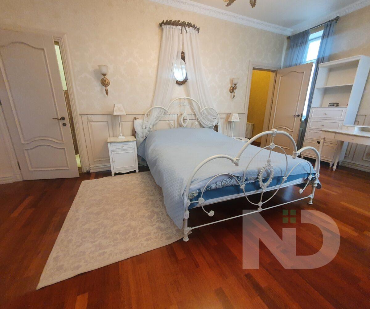 Первый этаж – холл, кухня, столовая, туалет, зал с камином, 2 санузла, сауна, выход на террасу с бассейном, комната отдыха, прачечная, гараж на два автомобиля. Второй этаж 3 спальни в каждой есть свой личный санузел и гардеробная, гостевая проходная комната.