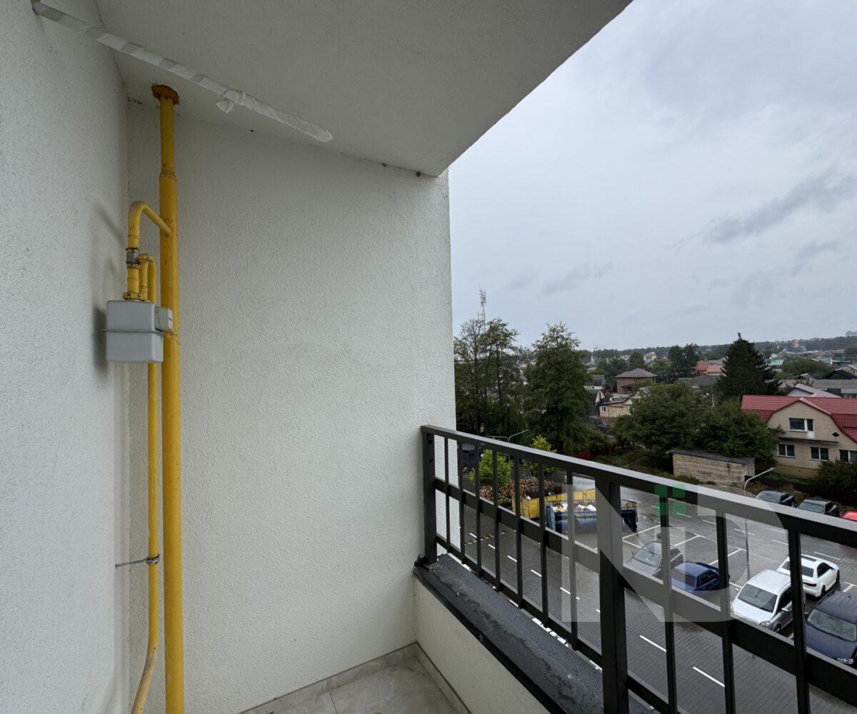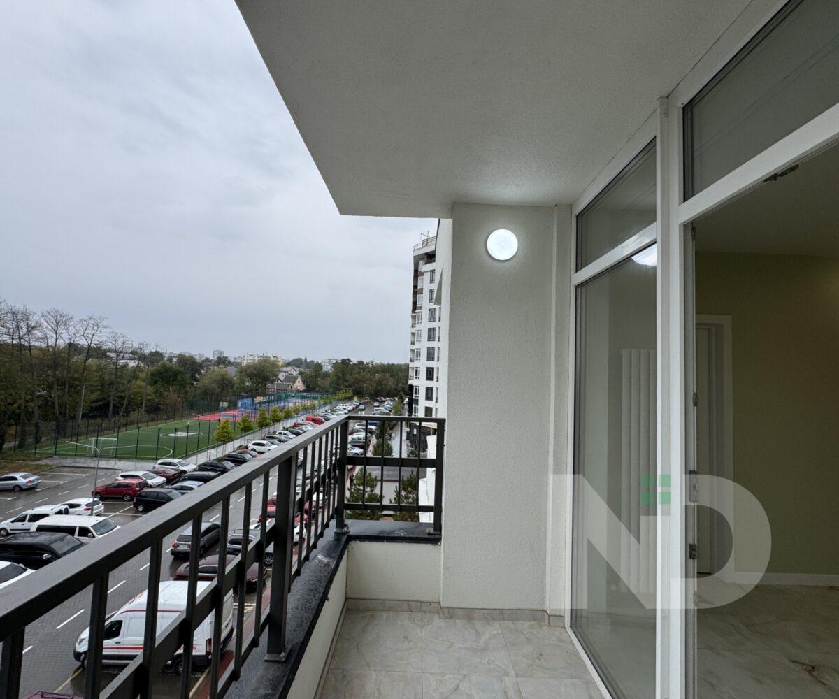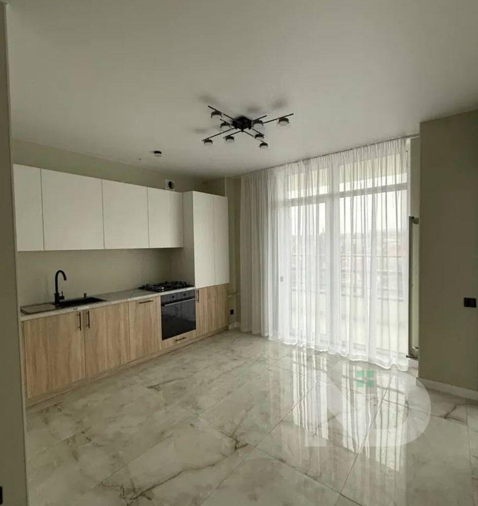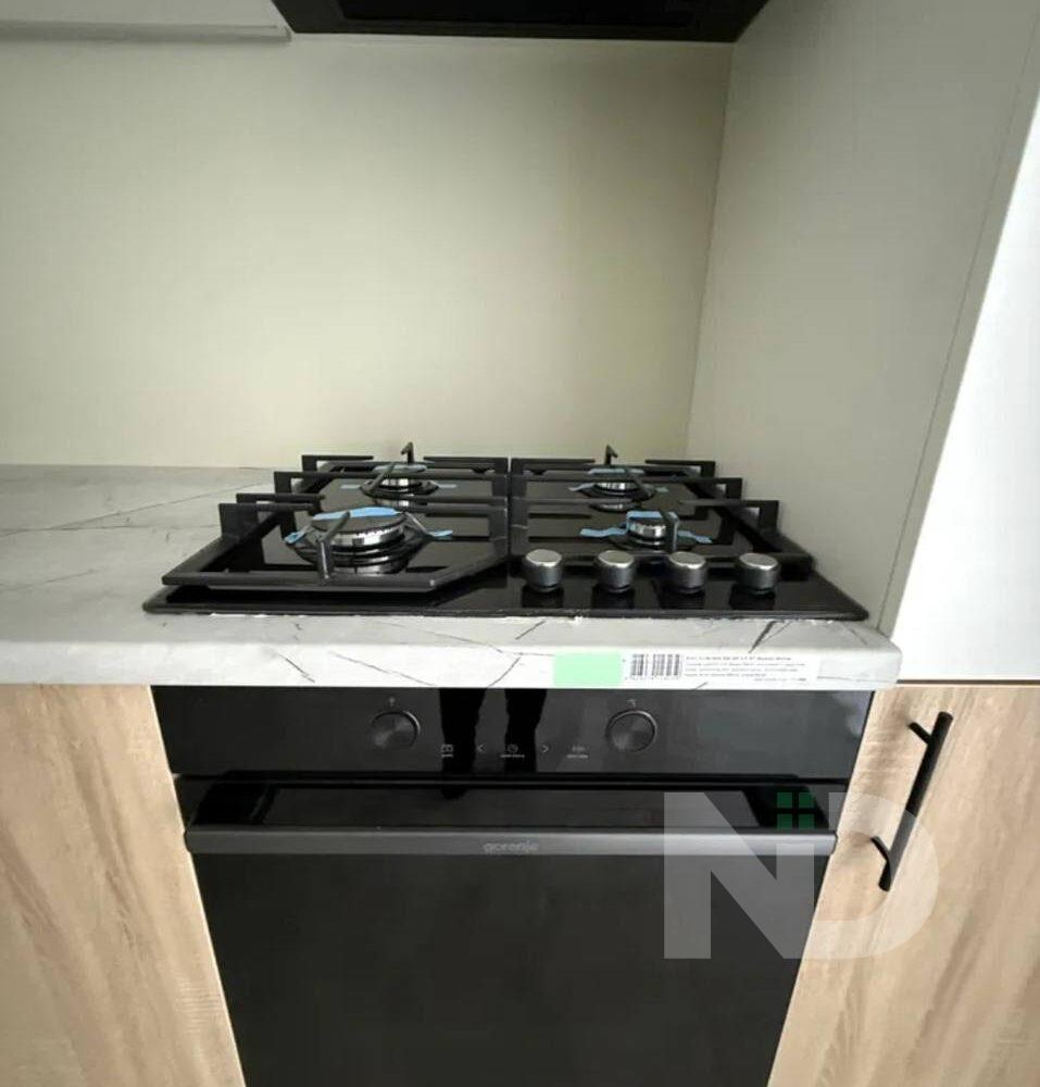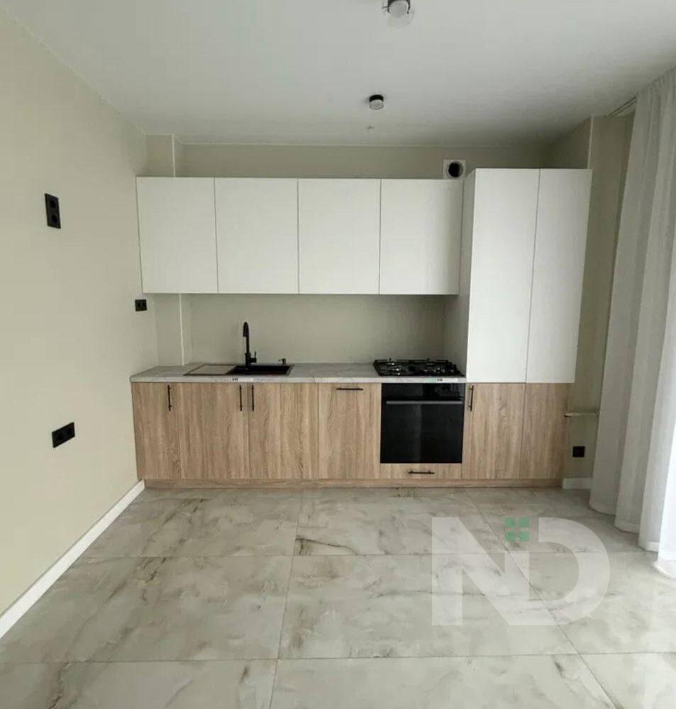 Планировка квартиры: просторная кухня с выходом на открытый балкон, отдельная комната с гардеробной, что придает удобства и функциональности.