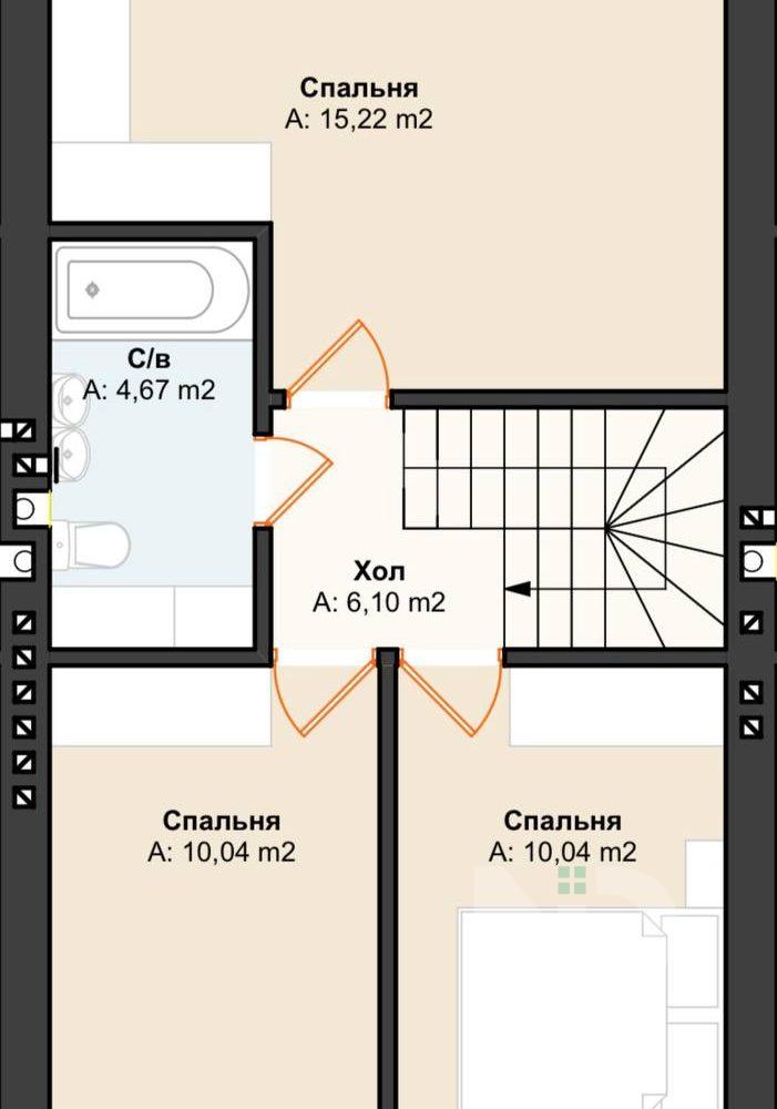 На втором этаже три отдельные комнаты и еще один санузел для удобства.