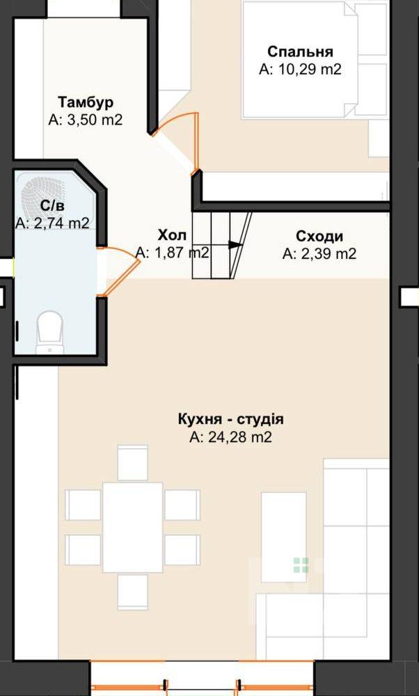 На первом этаже, просторная кухня-гостиная с выходом на террасу для семейных обедов или встреч с друзьями, отдельная гостевая комната, или кабинет, и санузел.