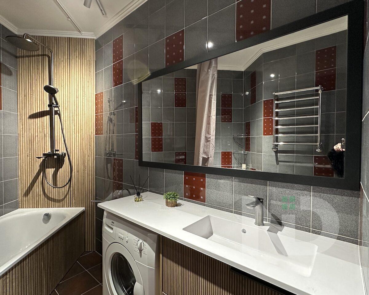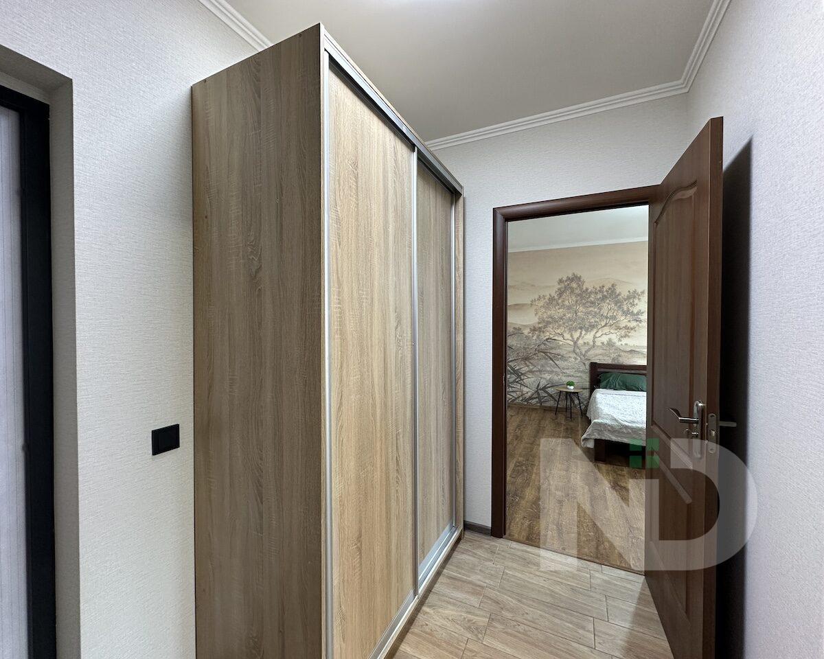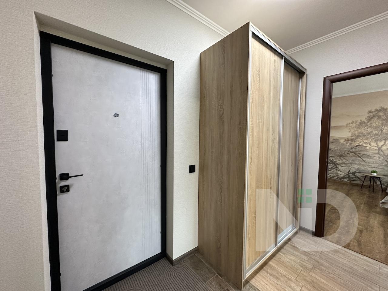 В квартире сделан современный ремонт в приятных светлых оттенках, есть мебель и техника – можно уже заезжать. Есть полноценная ванная с новой сантехникой. В прихожей шкаф-купе. В спальне большая двуспальная кровать, стол.