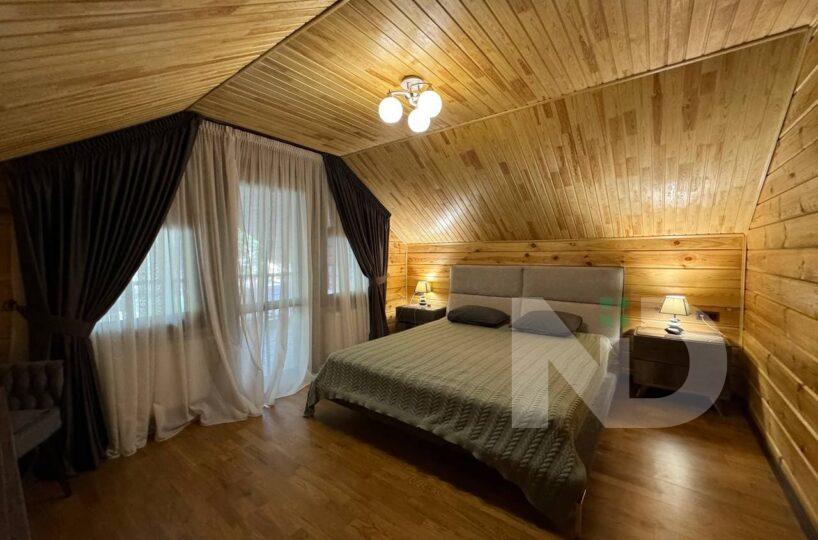 Натуральный дом-сруб в лесной Буче оптимального метража 120 кв.м. имеет 3 спальни, гостиную с камином, кухню-столовую, 2 санузла. В доме выполнен дорогой качественный ремонт, во всех санузлах установлена сантехника. В доме теплые водяные полы, электрокотел 14 кВт, двери из массива ольхи, на полу дубовая паркетная доска, дубовая лестница. Проложен высокоскоростной интернет (оптико-волоконный кабель), WI-FI в доме, охранная сигнализация, весь дом укомплектован LED-светильниками. Территория ограждена, установлены откатные ворота, парковка и отмостка вокруг дома вымощены брусчаткой. Скважина 70 м, канализация двухкамерный септик, система ливнеотвода. К дому подведено 16,5 кВт электроэнергии, оформлены дневной, ночной тарифы. Дом введен в эксплуатацию, возможна продажа в рассрочку.