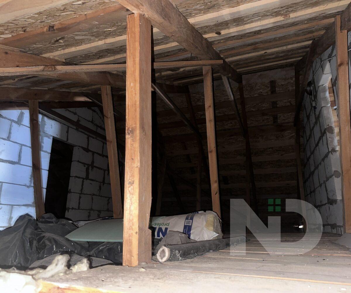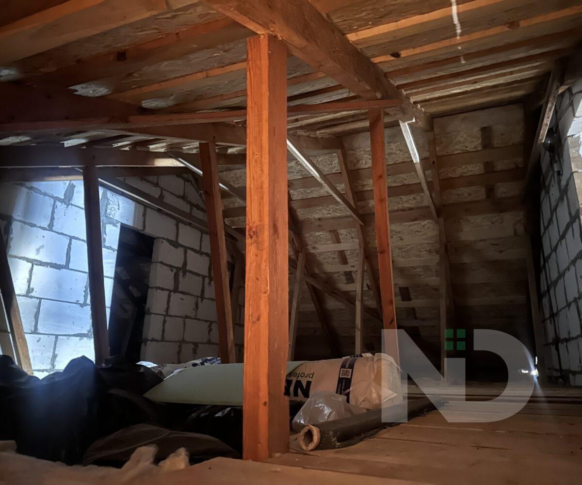 Стены построены из газоблока, утеплены пенопластом. Чердак утеплен 200 мм минеральной ваты, что обеспечивает хорошую теплоизоляцию. В доме есть погреб, который может служить полноценным укрытием.