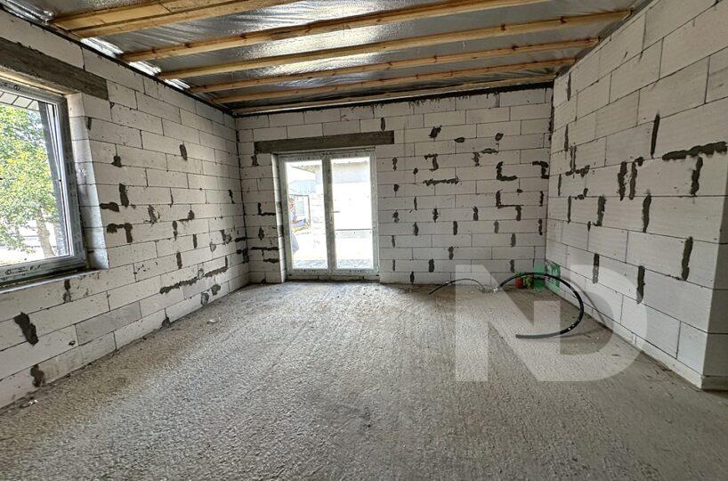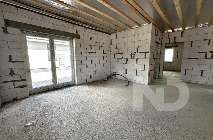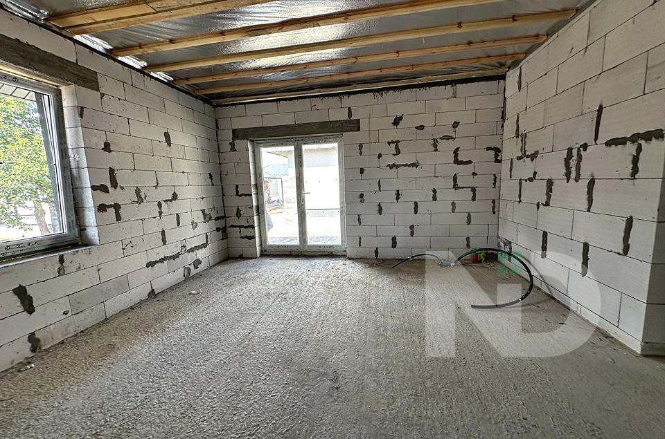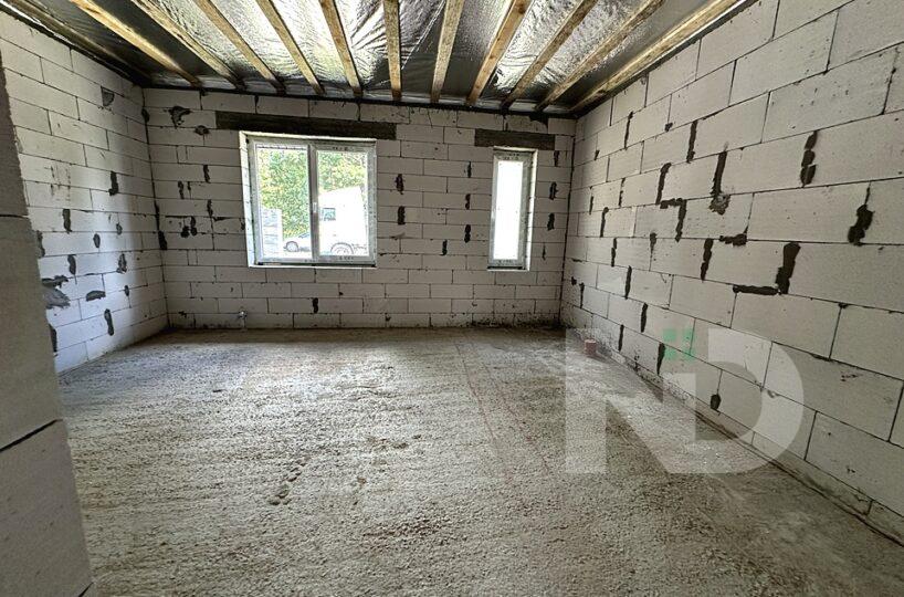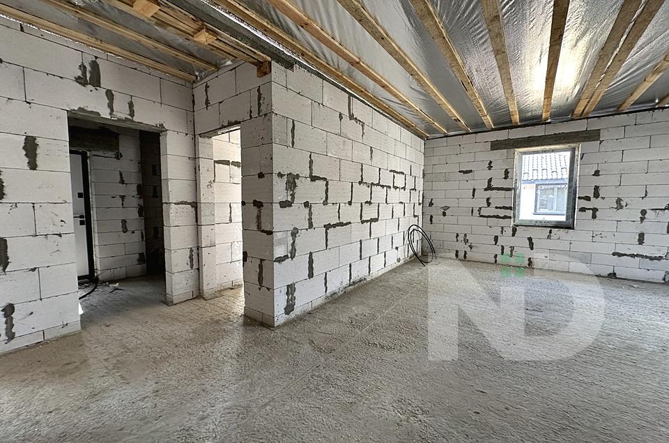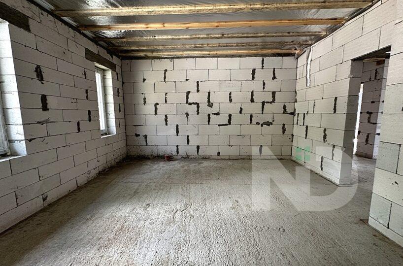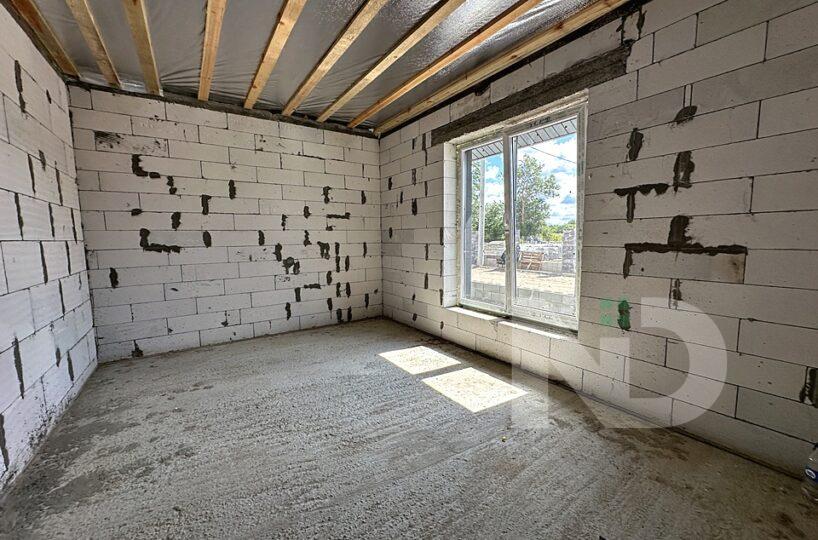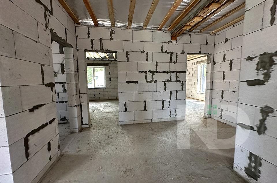 Построен из газоблока, утепленный пенопластом, собственная скважина и объемный септик на 12 кубов, заведено 3 фазы электричества 16 кВт, отопление газ.